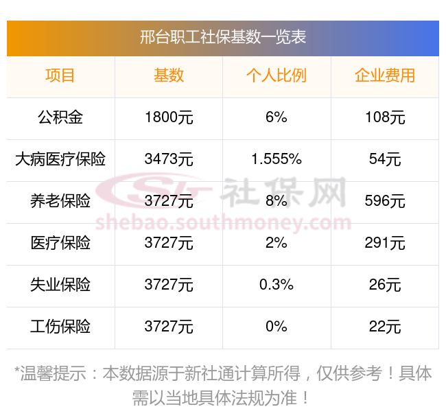邢台公司和个人社保缴纳比例一般情况为养老保险单位缴20%个人缴8%;医疗保险单位缴6%个人缴2%;工伤保险由用人单位缴纳,工伤保险费率分为0.6%—3.6%;生育保险由用人单位缴纳,费率为0.3%;失业保险:单位缴0.6%个人缴0.4%。那么2024邢台职工社保缴费多少钱一个月,2024邢台职工社保缴纳明细是多少?接下来随社保网小编一起了解最新资讯。