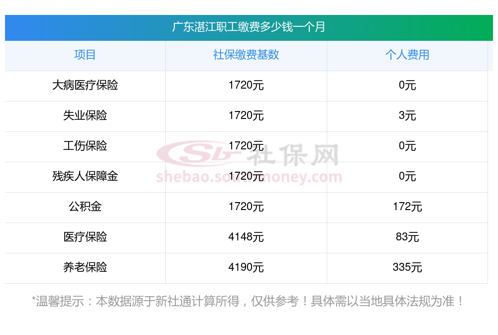 一、广东湛江职工社保缴费基数是多少钱一个月?职工社保缴纳标准是多少?