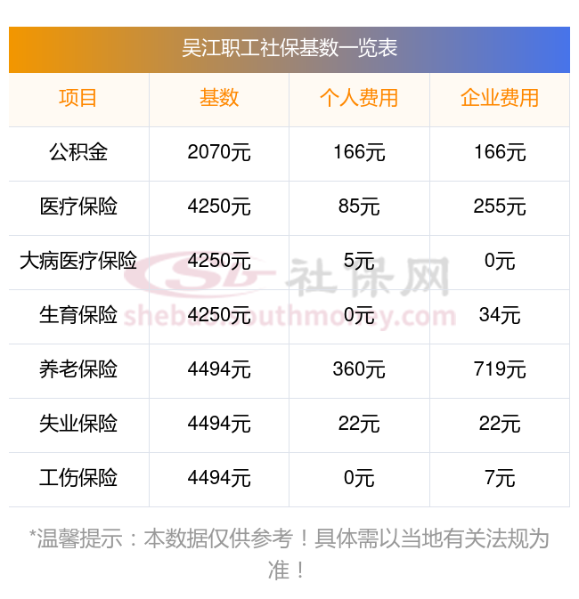 2024吴江职工社保一年要多少钱?吴江职工社保年缴费金额=社保月缴费基数*社保比例*12个月。需要提醒的,各地的社保缴费基数和比例是不一样的,因此,社保每年要交多少钱也是因地而异的。