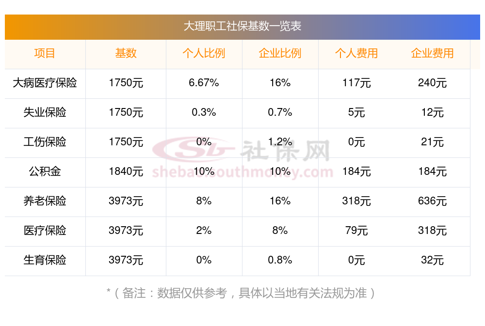 一、大理职工社保缴费多少钱一个月,2023-2024年职工和公司社保各交多少钱?