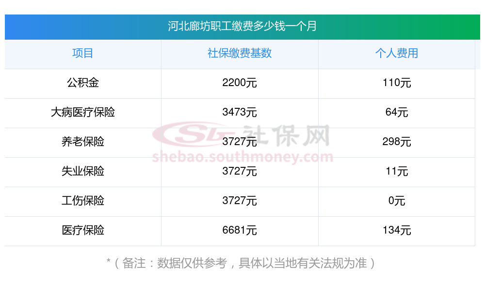 一、河北廊坊职工社保缴费多少钱一个月,2023-2024年职工和公司社保各交多少钱?