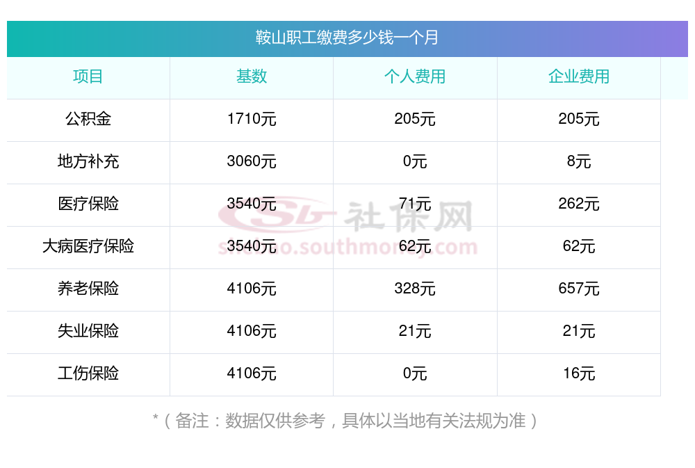 一、鞍山职工社保缴费基数是多少钱一个月?职工社保缴纳标准