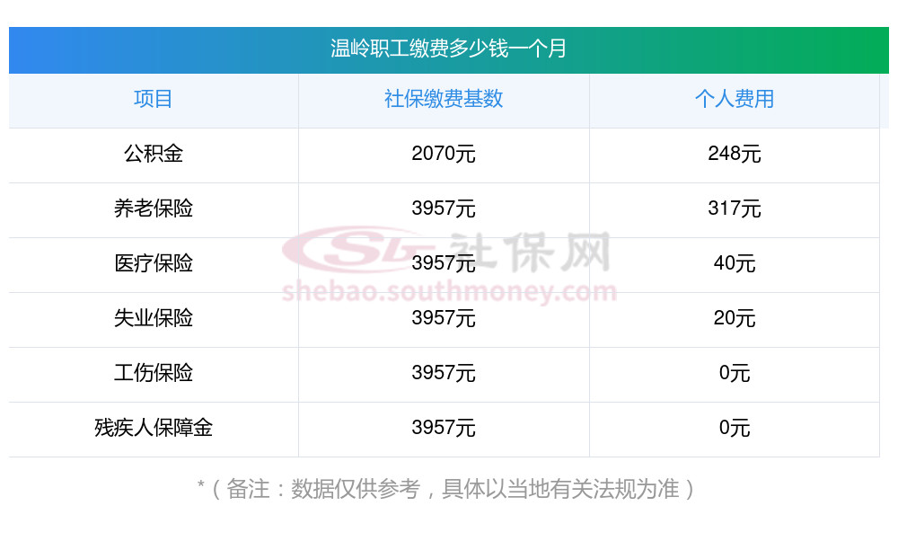 2024温岭职工社保一年要多少钱?温岭职工社保年缴费金额=社保月缴费基数*社保比例*12个月。需要提醒的,各地的社保缴费基数和比例是不一样的,因此,社保每年要交多少钱也是因地而异的。
