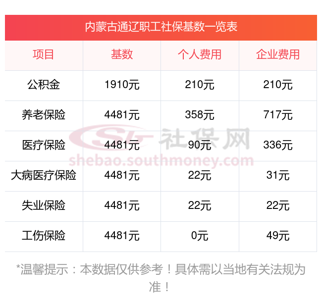 二、内蒙古通辽职工社保缴费多少钱一个月,2023-2024年职工和公司社保各交多少钱?