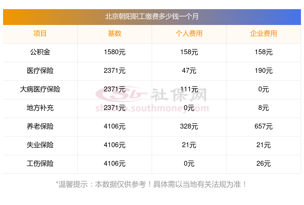 据新社通app显示,北京朝阳社保缴费基数2023-2024年标准,(社保最低一个月要交多少钱)北京朝阳社保费用如下: