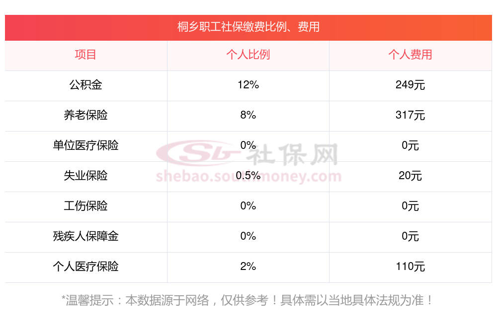 据新社通app显示,桐乡社保缴费基数2023-2024年最新消息,桐乡职工社保缴费详情如下: