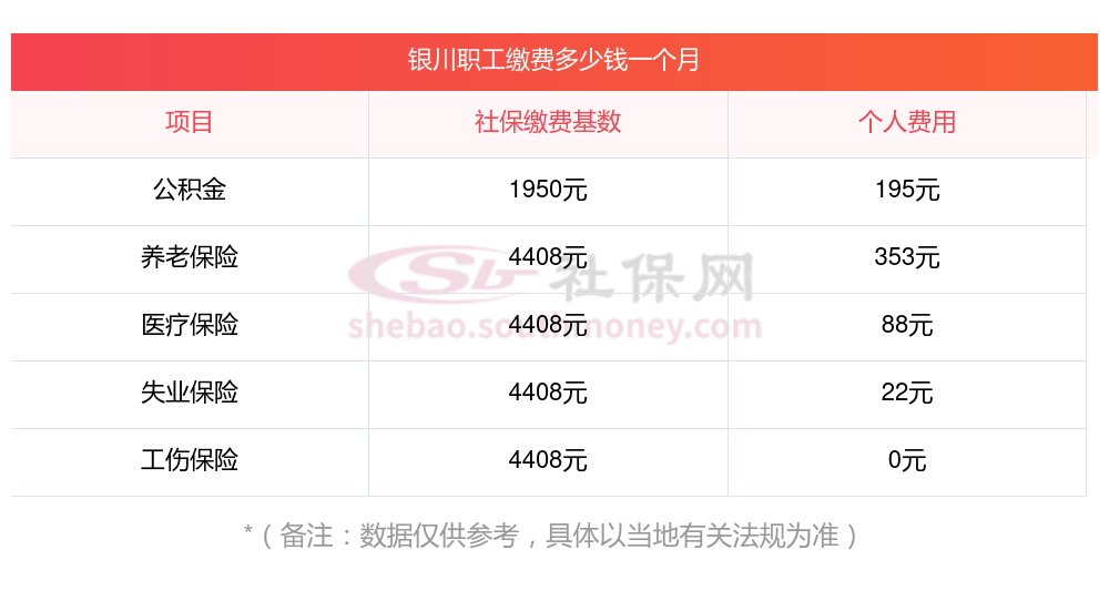 一、银川职工社保缴费基数是多少钱一个月?职工社保缴纳标准是多少?