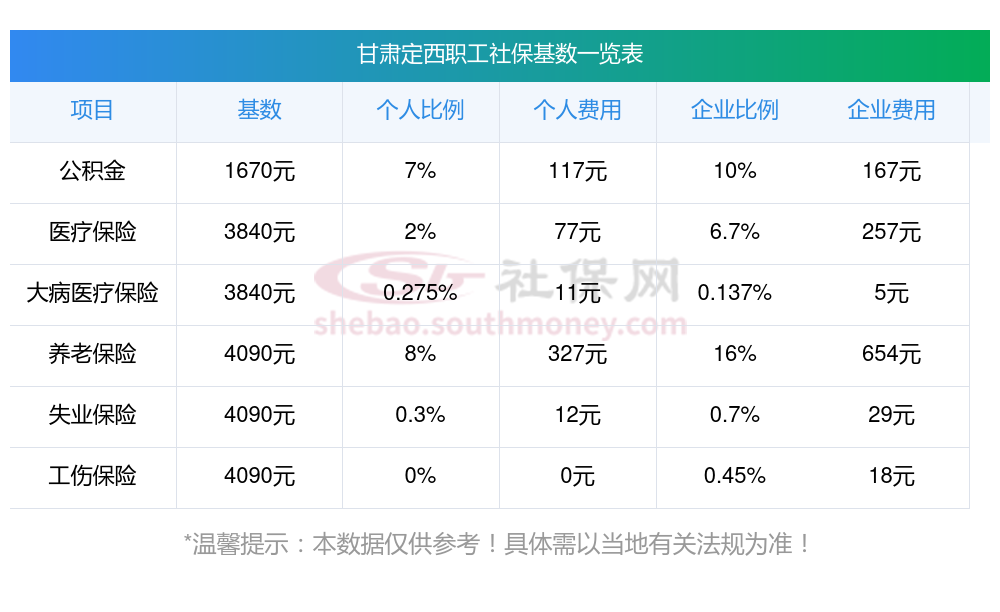 二、甘肃定西职工社保缴费基数是多少钱一个月?职工社保缴纳标准是多少?