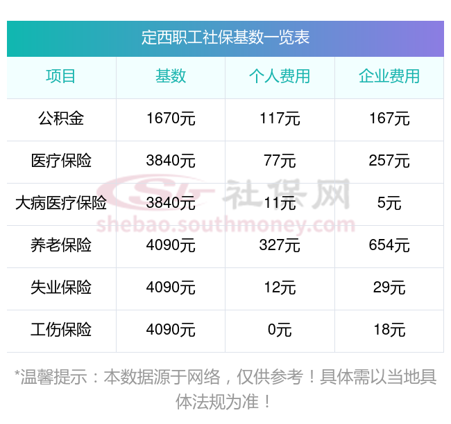 二、定西2023-2024年职工和公司社保各交多少钱 定西职工社保缴费多少钱一个月