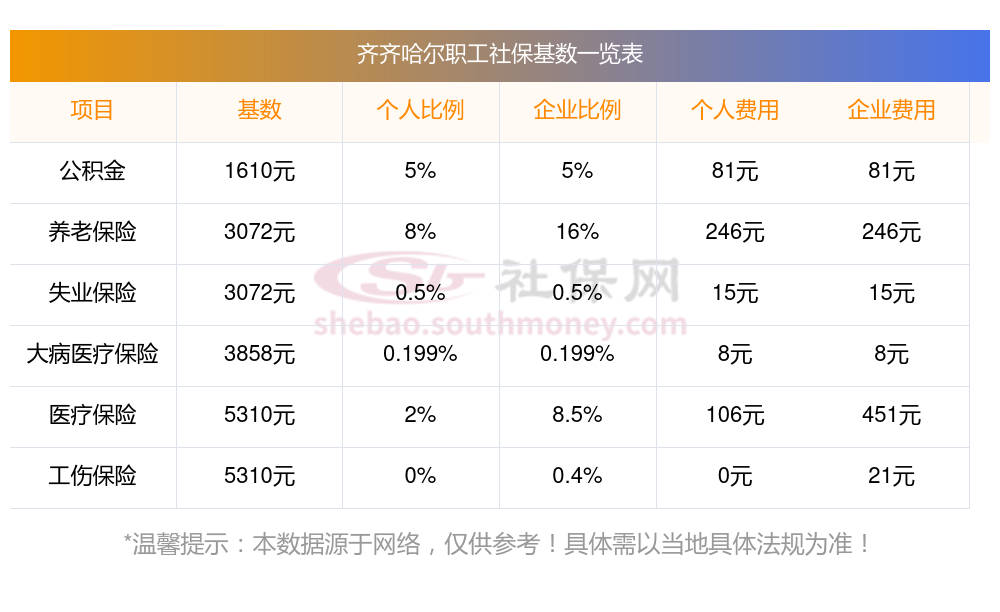 一、齐齐哈尔职工社保缴费基数是多少钱一个月?职工社保缴纳标准