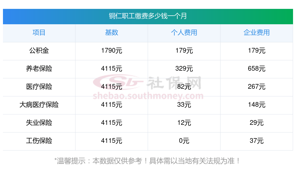 二、铜仁职工社保缴费多少钱一个月,2023-2024年职工和公司社保各交多少钱?