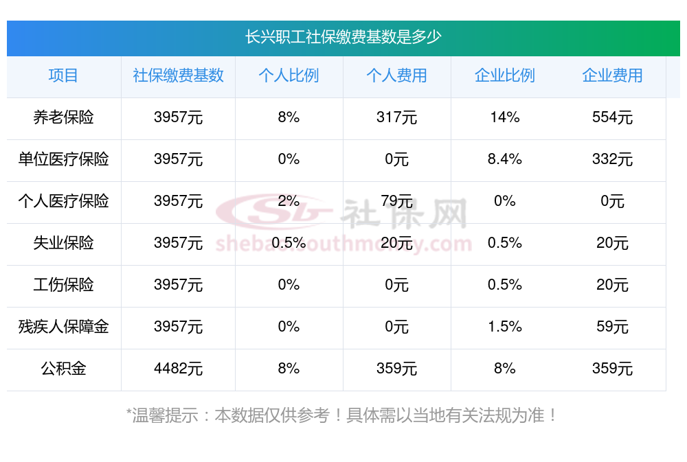二、长兴职工社保缴费基数是多少钱一个月?职工社保缴纳标准是多少?