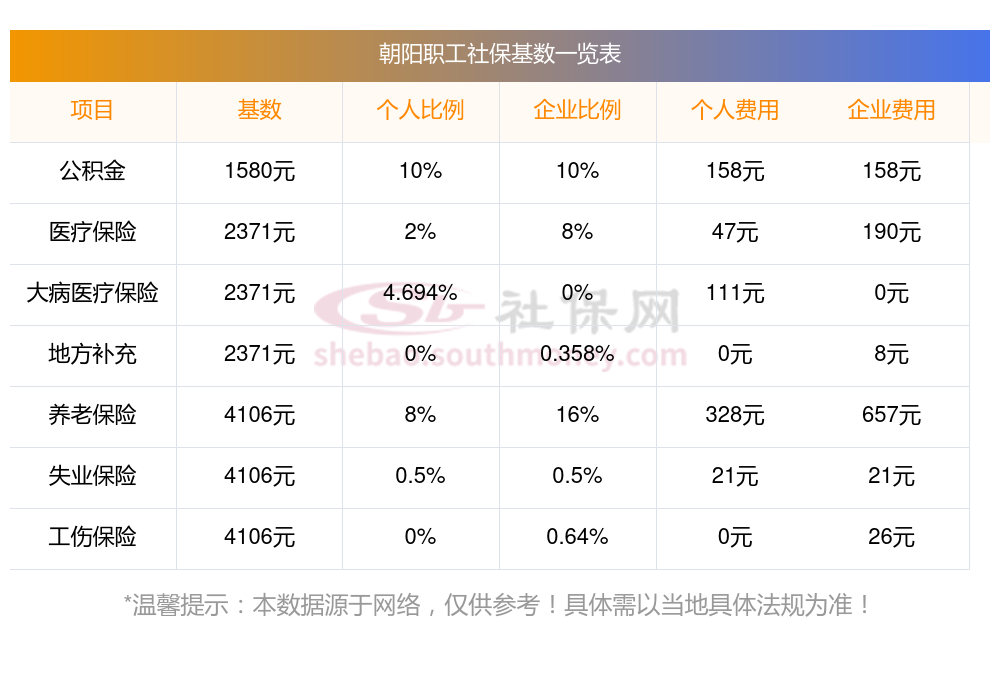 二、朝阳职工社保缴费基数是多少钱一个月?职工社保缴纳标准是多少?
