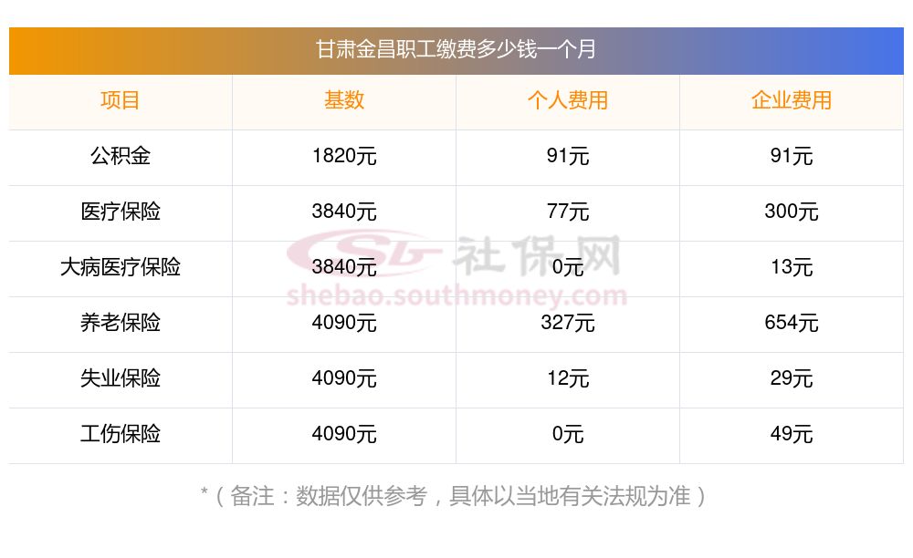 一、甘肃金昌职工社保缴费多少钱一个月,2023-2024年职工和公司社保各交多少钱?