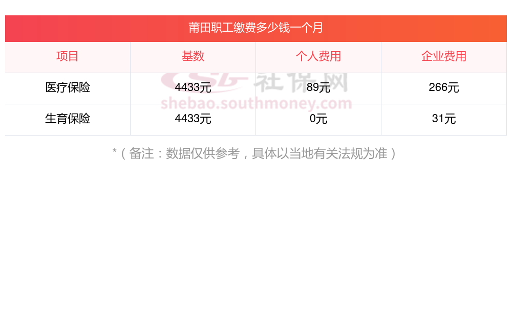 二、莆田2023-2024年职工和公司社保各交多少钱 莆田职工社保缴费多少钱一个月