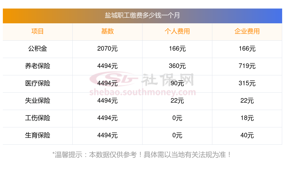 现在我们的经济发展得越来越快开了,大部分公司和企业给自己的员工购买和办理的社会保险也是很不错的,而且职工社会保险基数定了缴费比例,社会保险包括了医疗保险、工伤保险、失业保险、生育保险和养老保险以及住房公积金这基本的五险一金的。很多人还不清楚自己的社保缴纳多少钱?那么盐城2024职工社保缴费多少钱一个月,盐城职工社保缴纳明细是多少?接下来随新社通APP小编一起了解最新资讯。