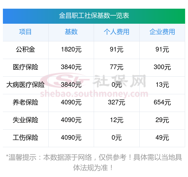 据新社通app显示,金昌社保缴费基数2023-2024年标准,(社保最低一个月要交多少钱)金昌社保费用如下: