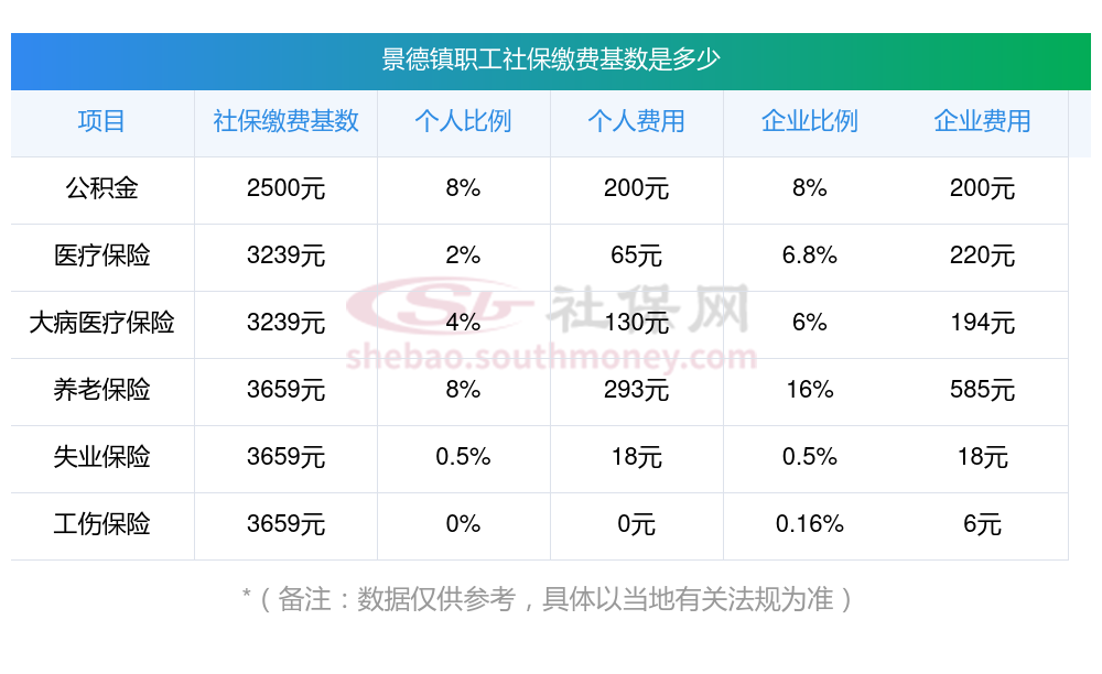 一、景德镇职工社保缴费基数是多少钱一个月?职工社保缴纳标准是多少?