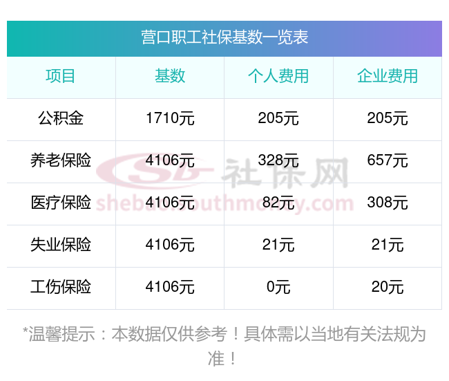 据新社通app显示,营口社保缴费基数2023-2024年标准,(社保最低一个月要交多少钱)营口社保费用如下:
