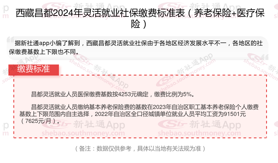 二、西藏昌都2024年灵活就业社保缴费基数、比例最新消息