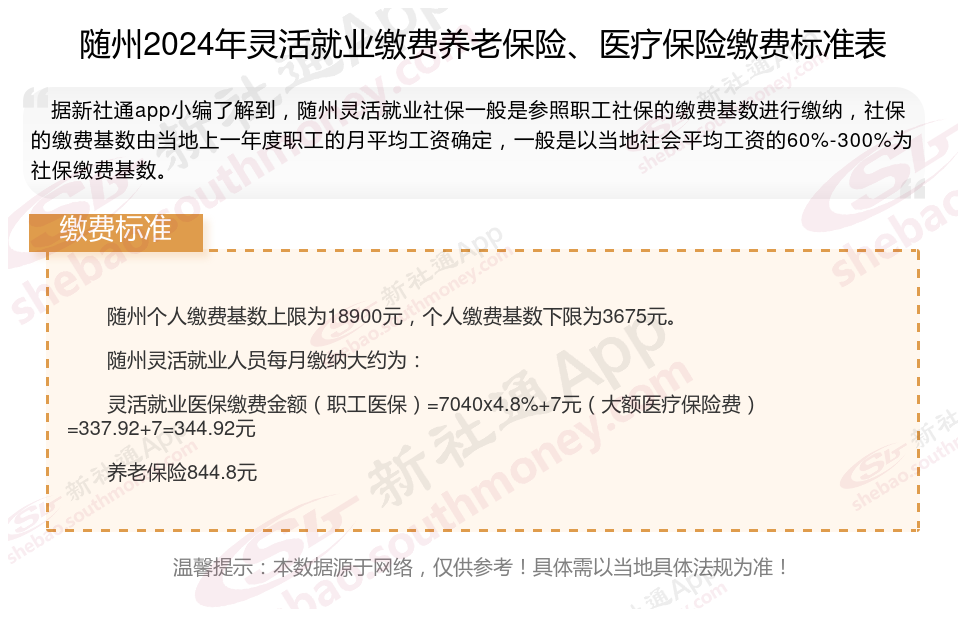一、2024年随州灵活就业社保缴费标准表 随州灵活就业社保多少钱一个月?