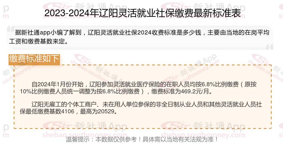 二、辽阳2024年灵活就业社保缴费基数及比例最新消息