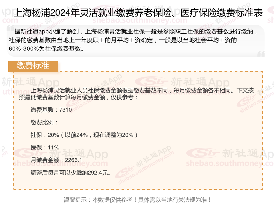 二、上海杨浦2024年灵活就业社保缴费基数、比例最新消息