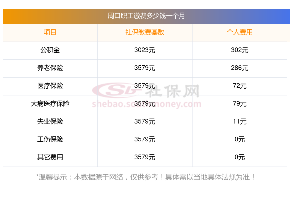 据新社通app显示,周口社保缴费基数2023-2024年标准,(社保最低一个月要交多少钱)周口社保费用如下: