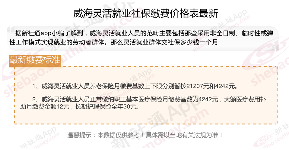 二、威海2024年灵活就业社保缴费基数、比例最新消息