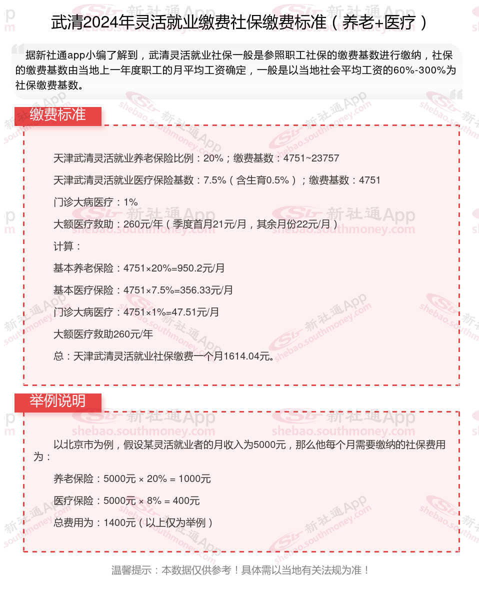一、2024年武清灵活就业社保缴费标准表 武清灵活就业社保多少钱一个月?