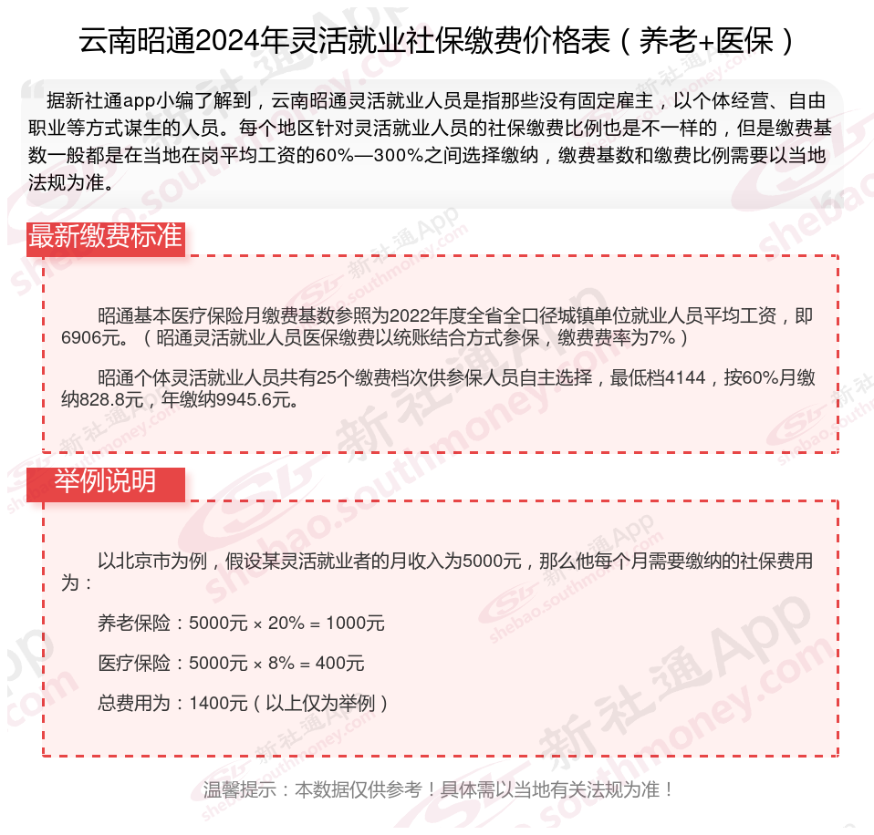 一、云南昭通灵活就业社保缴费基数及比例最新消息