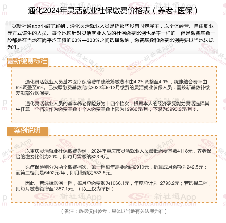 一、2024年通化灵活就业社保缴费标准表 通化灵活就业社保多少钱一个月?