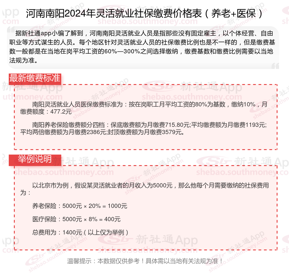 一、2024年河南南阳灵活就业社保缴费标准表 河南南阳灵活就业社保怎么交?