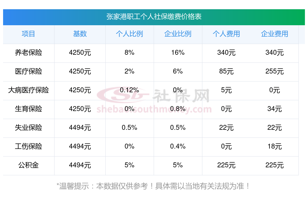 (张家港社保最低一个月要交多少钱)张家港社保费用明细最新如下: