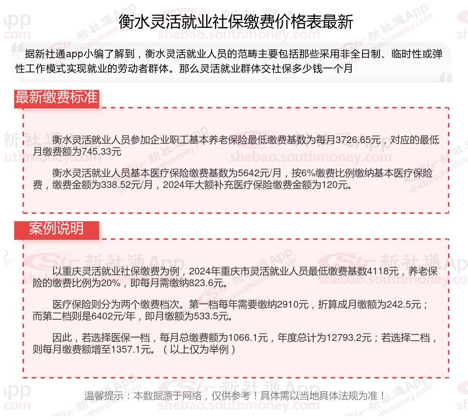一、2024年衡水灵活就业社保缴费标准表 衡水灵活就业社保多少钱一个月?