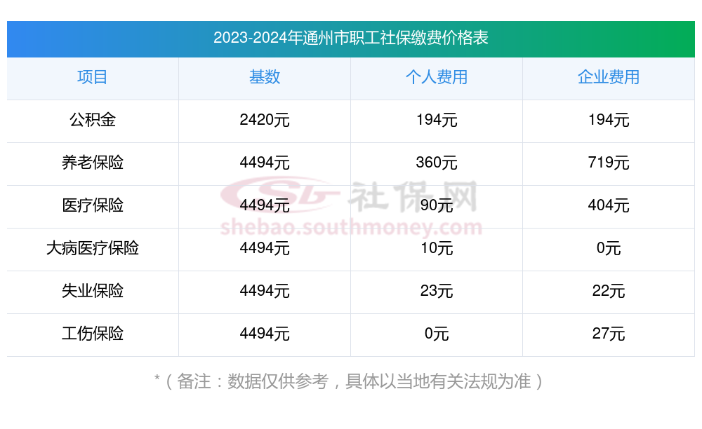 一、通州市2023-2024年职工和公司社保各交多少钱 通州市职工社保缴费多少钱一个月