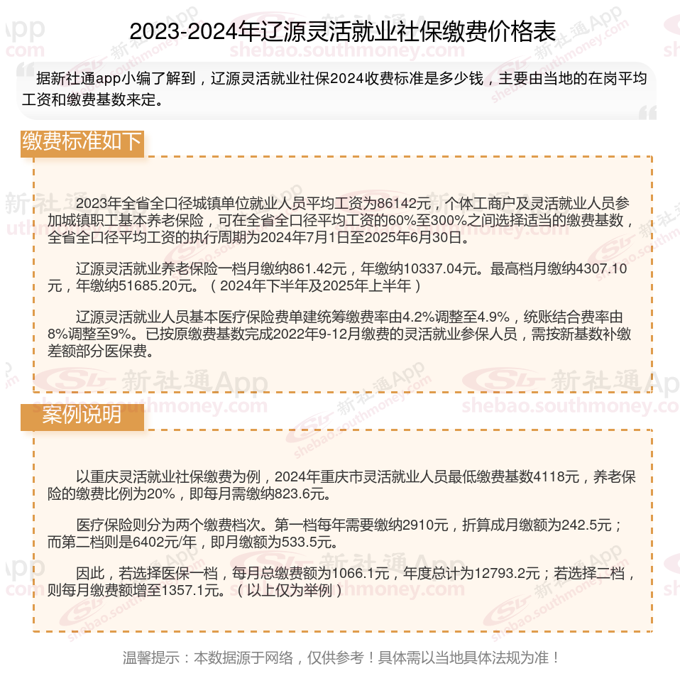 一、2024年辽源灵活就业社保缴费基数、比例最新消息