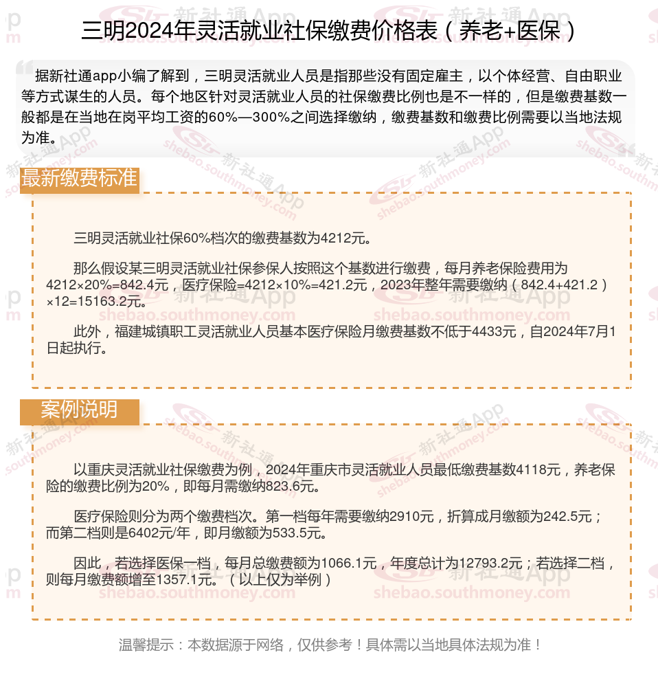 一、2024年三明灵活就业社保缴费标准表 三明灵活就业社保多少钱一个月?