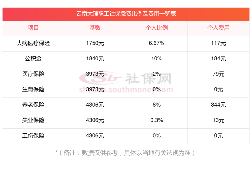 据新社通app显示,云南大理社保缴费基数2023-2024年最新标准如下: