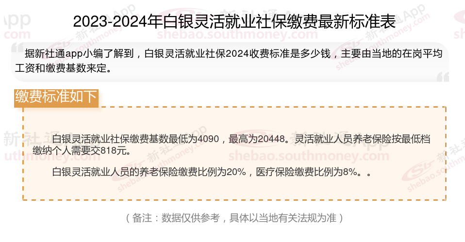 二、白银2024年灵活就业社保缴费基数、比例最新消息