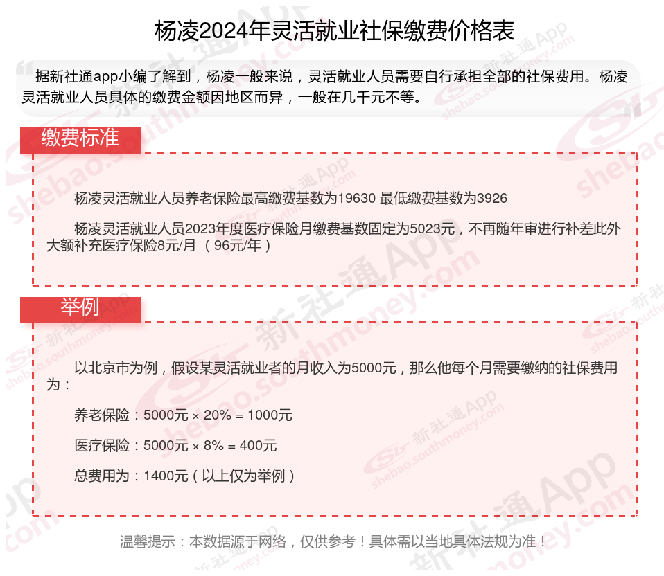 一、杨凌灵活就业社保缴费基数及比例最新消息