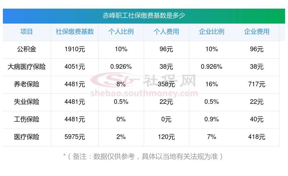 一、赤峰职工社保缴费基数是多少钱一个月?职工社保缴纳标准