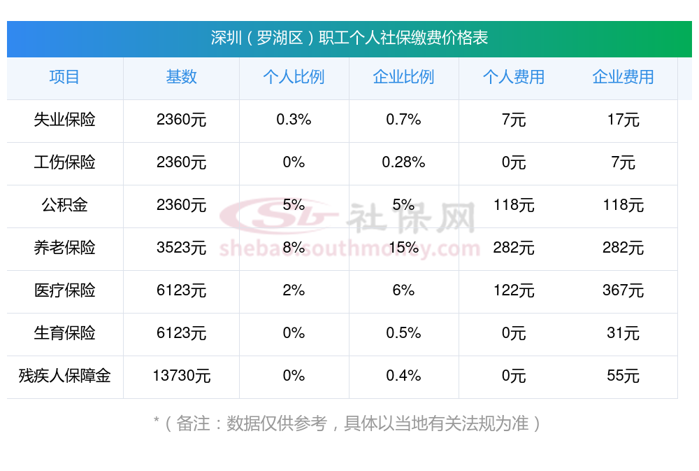 二、深圳(罗湖区)职工社保缴费多少钱一个月,2023-2024年职工和公司社保各交多少钱?