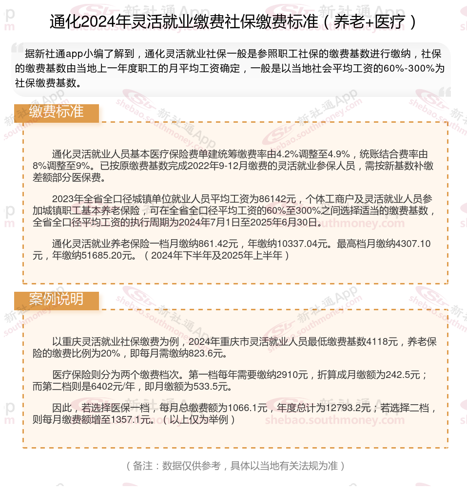 一、2024年通化灵活就业社保缴费标准表 通化灵活就业社保多少钱一个月?