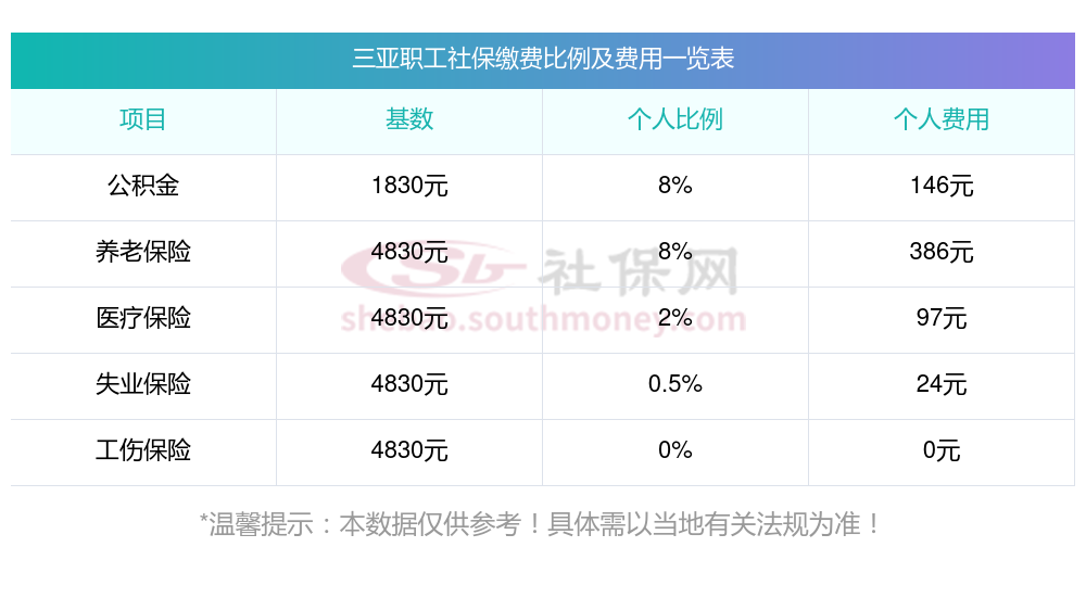 三亚职工社保缴费多少钱?三亚职工社保缴费基数最新参考为:3579.00,具体如下: