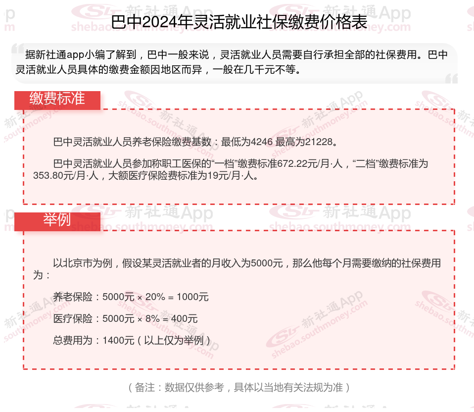 二、巴中2024年灵活就业社保缴费基数、比例最新消息