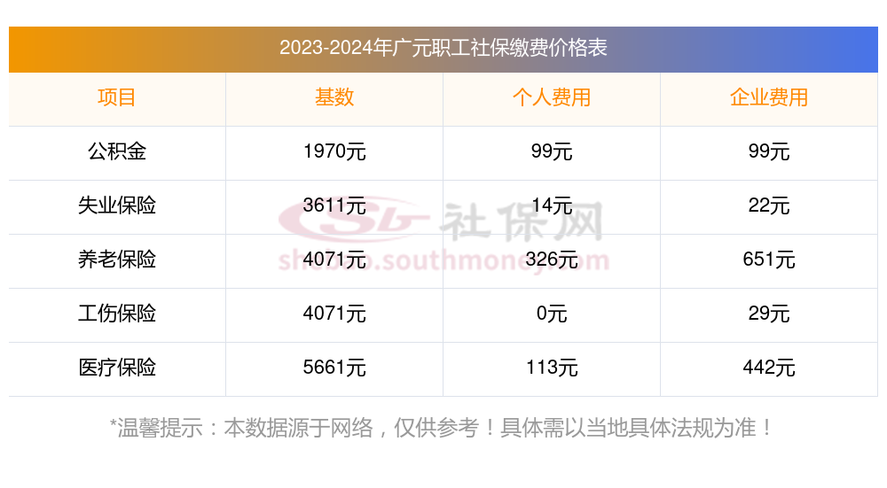 据新社通app显示,广元社保缴费基数2023-2024年标准,(社保最低一个月要交多少钱)广元社保费用如下: