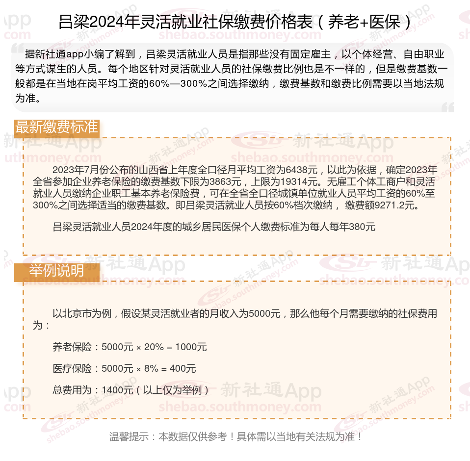 二、吕梁2024年灵活就业社保缴费基数、比例最新消息