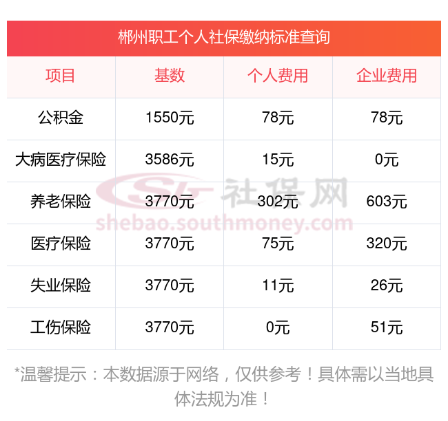 据新社通app小编了解,2023-2024年郴州社保缴费基数参照为3579.00,郴州社保最低一个月要交多少钱?如下: