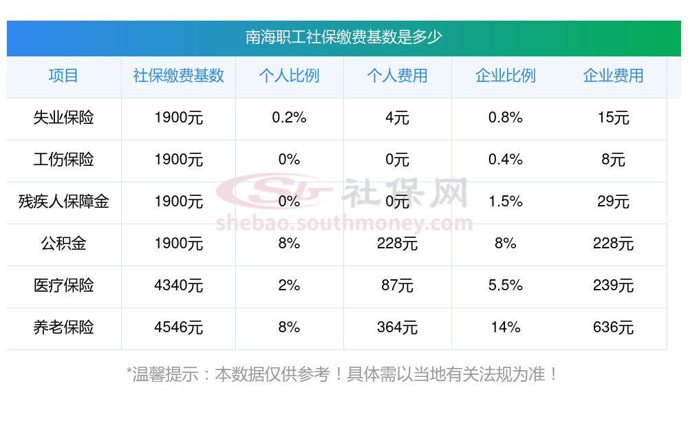 一、南海职工社保缴费基数是多少钱一个月?职工社保缴纳标准